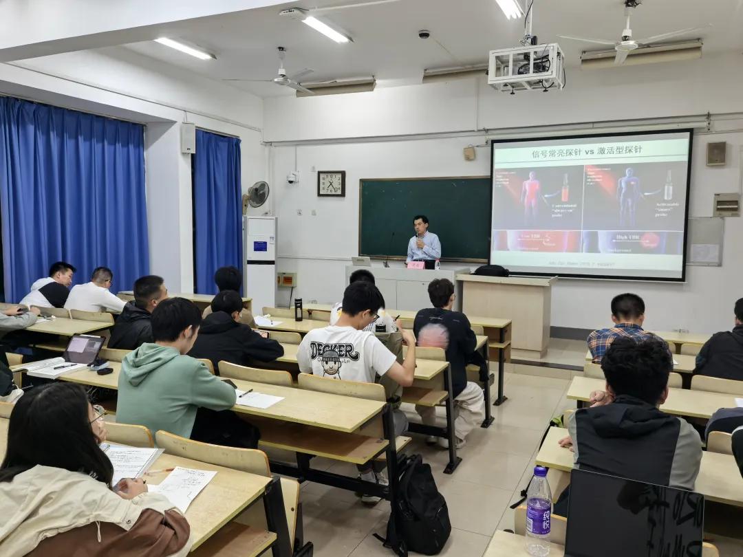 2024年10月18日晚上,教3-103,学院邀请谢晨教授为“菁英计划”学员开展题为《有机共轭分子在生物诊疗中的应用》的讲座。讲座由22级本科生辅导员侍茜茜老师主持,全体2023级和2024级“菁英计划”学员参加学习。