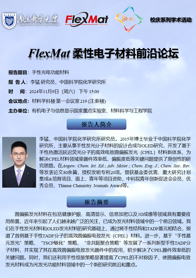 FlexMat柔性电子材料前沿论坛:中国科学院化学研究所 李猛 研究员