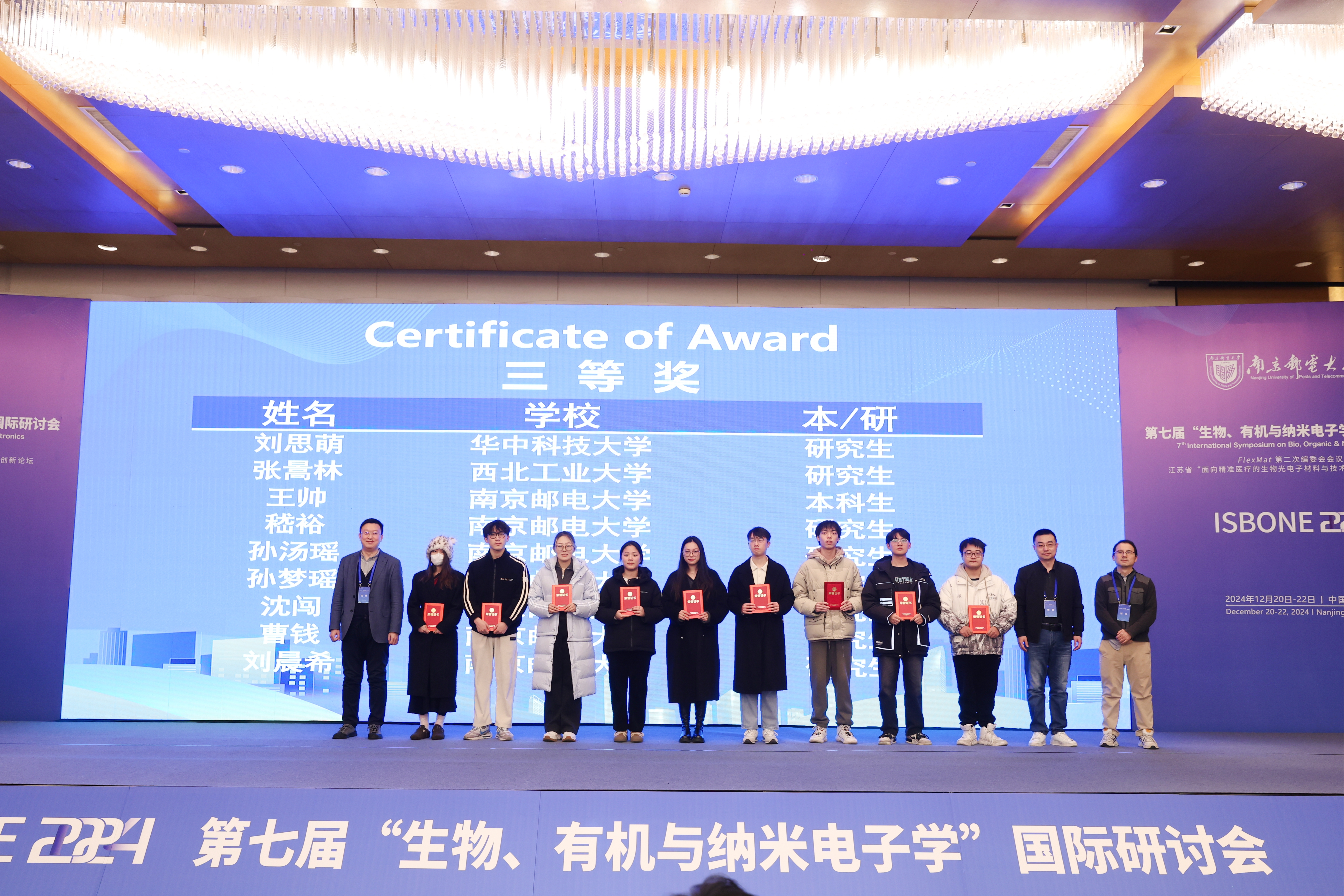 12月20日至22日,第七届“生物、有机与纳米电子学”国际研讨会(7th Symposium on Bio, Organic & Nano Electronics,ISBONE 2024)在南京顺利召开。