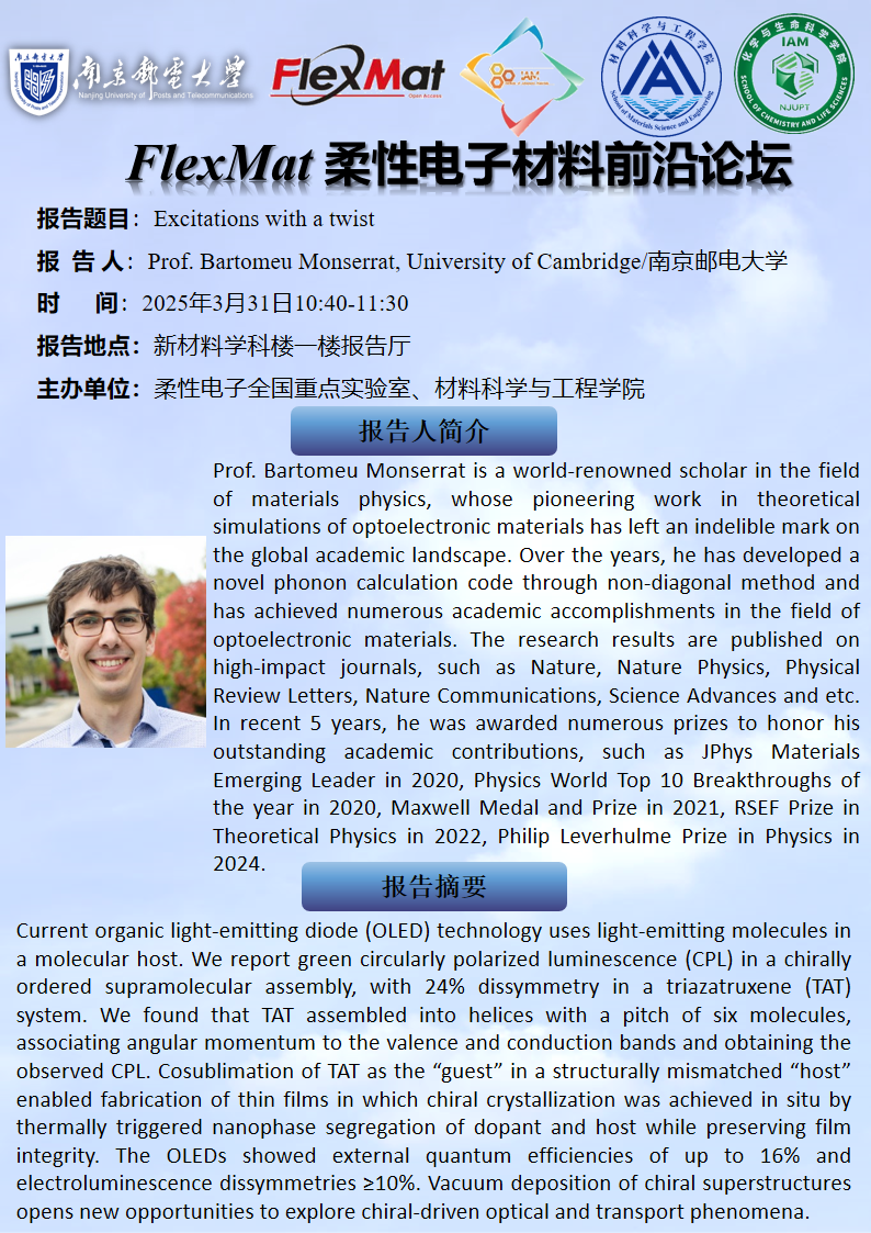 FlexMat柔性电子材料前沿论坛: 剑桥大学/福利姬 Prof. Bartomeu Monserrat
