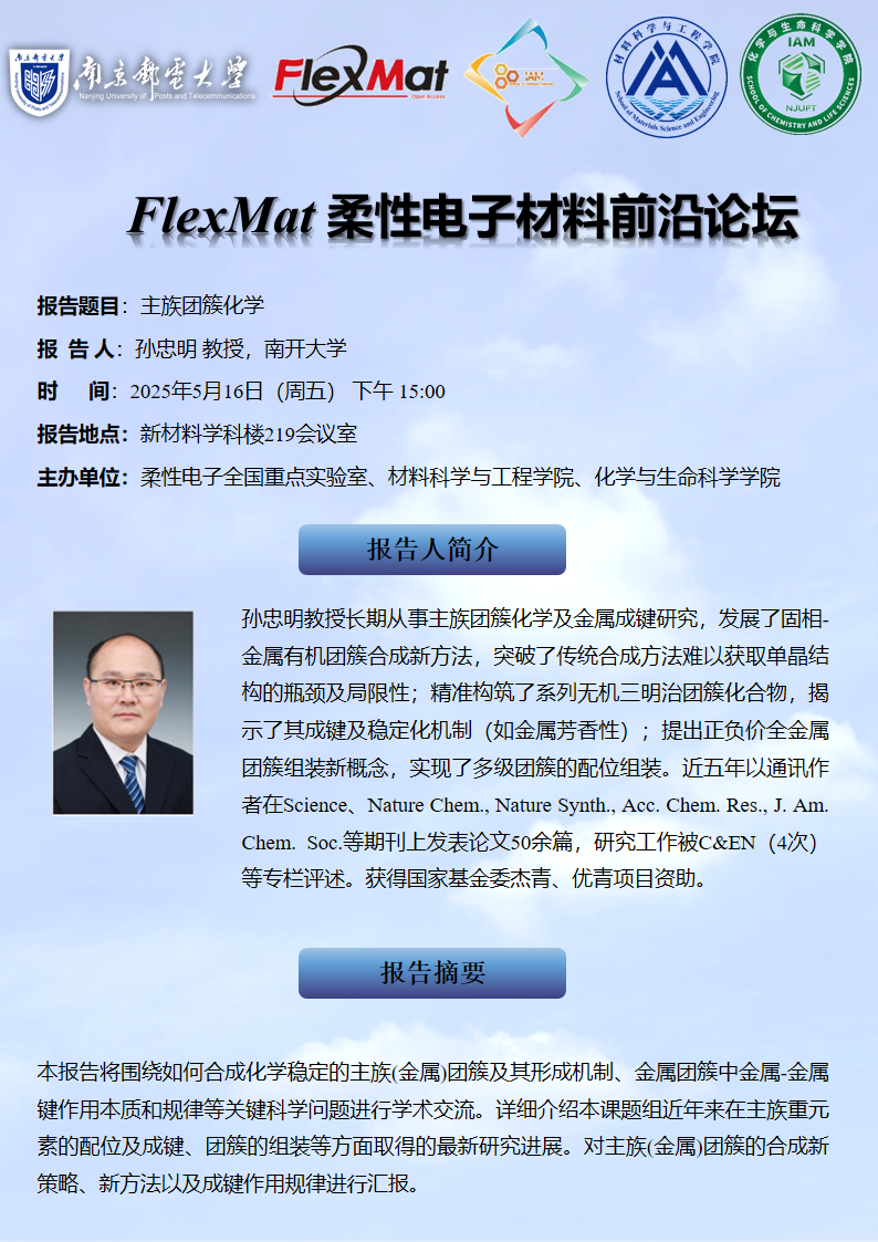 FlexMat柔性电子材料前沿论坛: 南开大学 孙忠明 教授