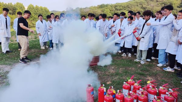 疏散演练落幕后,两院开展了灭火器实操训练。消防员为师生们详尽介绍了各种灭火器的类型及其特性,现场演示如何正确使用灭火器。师生们在消防员的指导下,分组进行实操灭火演练,现场气氛热烈。