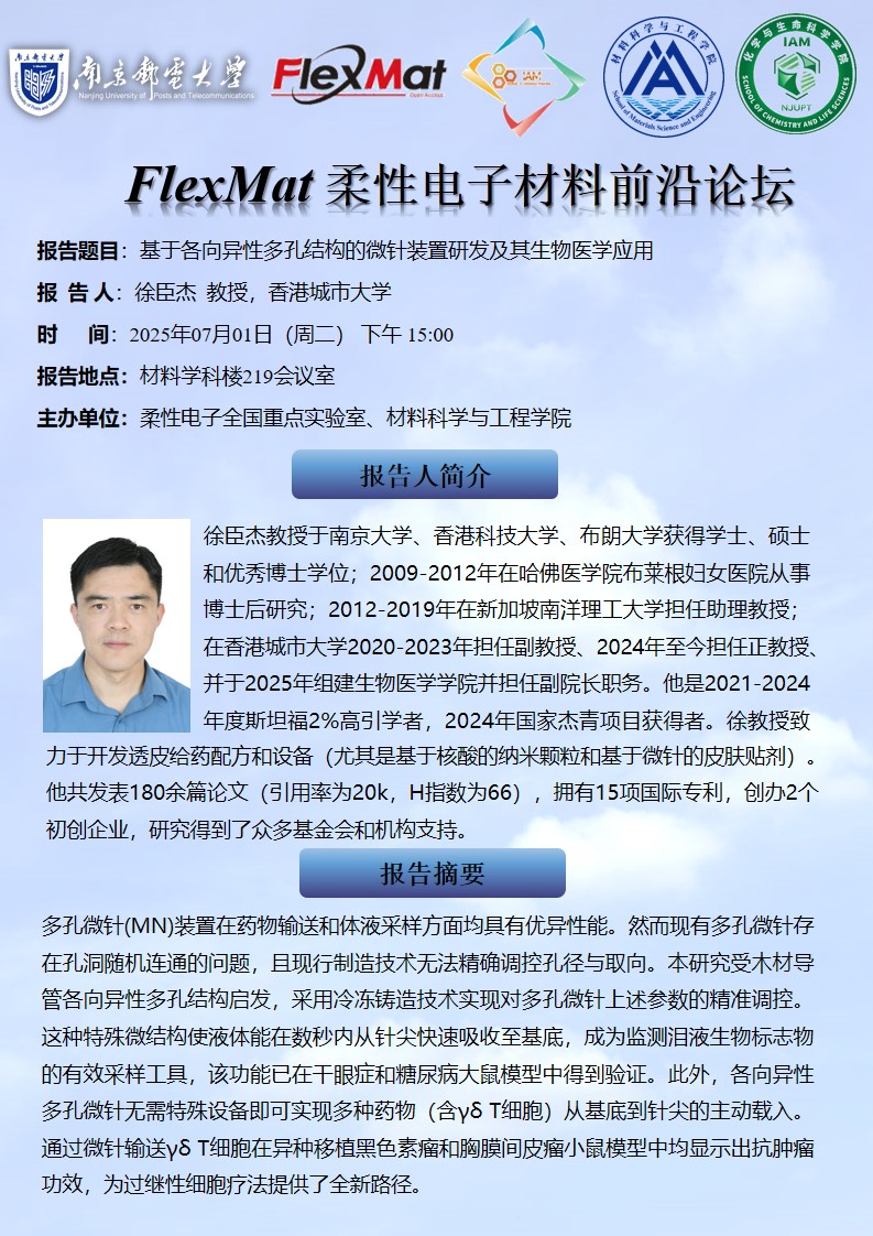 FlexMat柔性电子材料前沿论坛: 香港城市大学 徐臣杰 教授