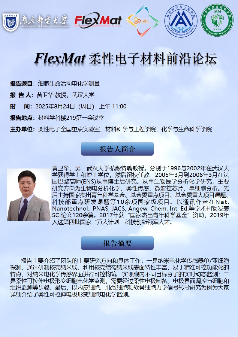 FlexMat柔性电子材料前沿论坛:武汉大学 黄卫华 教授