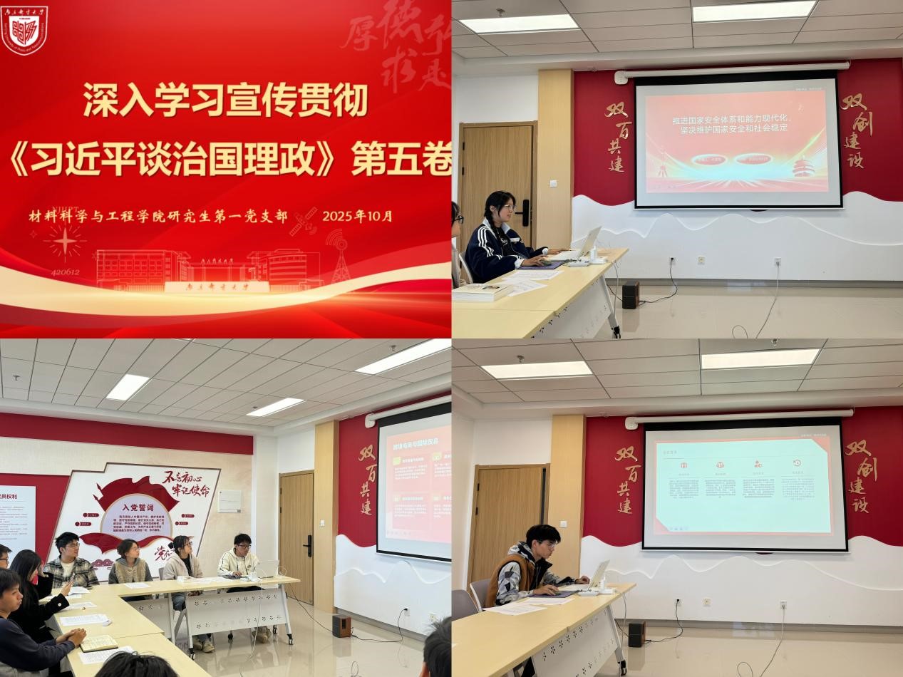 为深入学习贯彻习近平新时代中国特色社会主义思想,提升研究生党员的理论素养与责任担当,2025年10月23日,福利姬 研究生第一党支部开展《习近平谈治国理政》第五卷学习汇报会。会议由支部书记刘金硕主持,支部全体党员及入党积极分子参与。