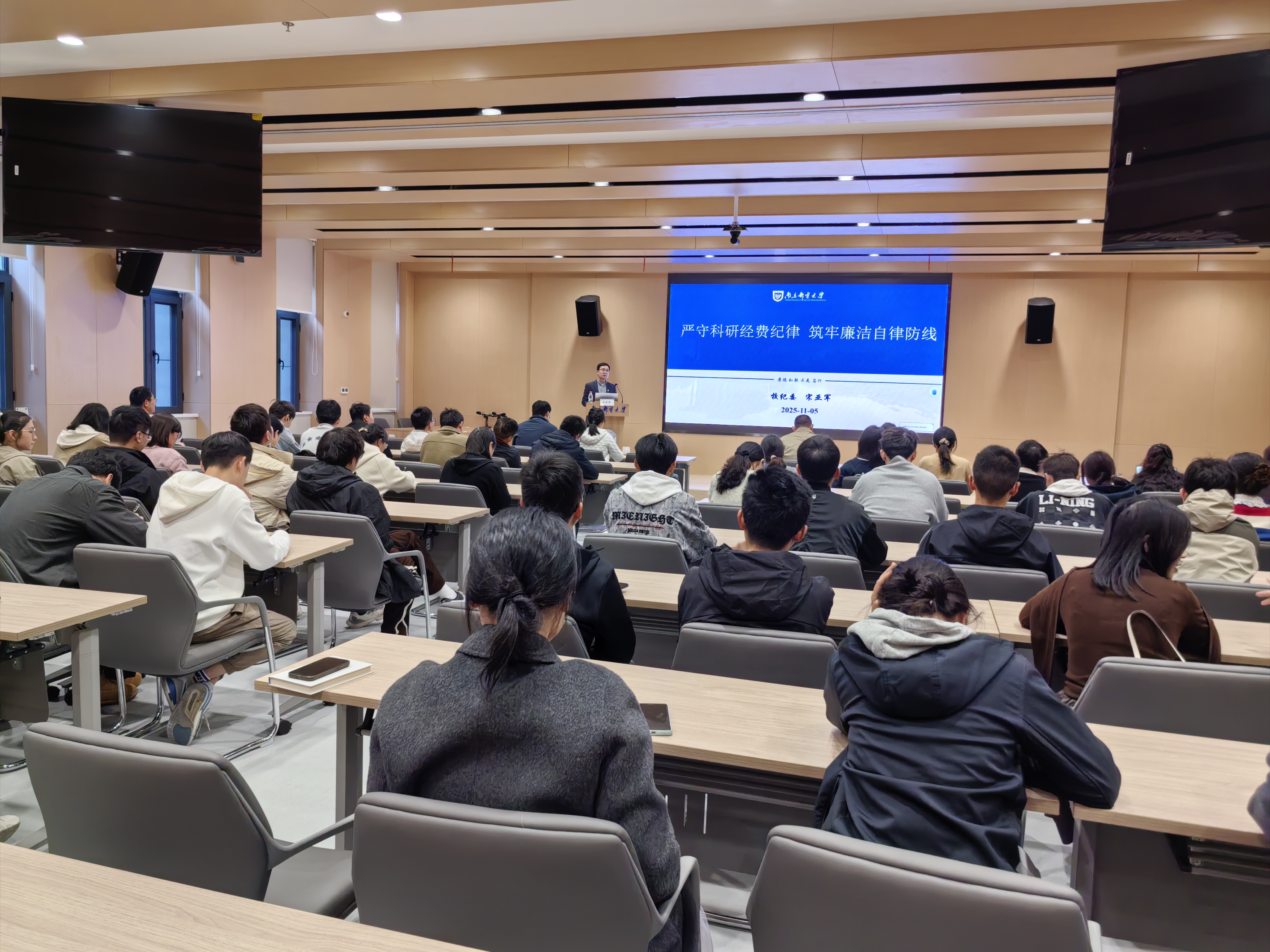 报告会前,全体参会人员集中观看了中央纪委的宣传片《反腐 为了人民》系列记录片第二集《风腐同查同治》。宋亚军副处长以《严守科研经费纪律 筑牢廉洁自律防线》为题,做党风廉政建设专题报告。从认清形势、逾矩之人、纪法尺规、以案明纪、后果警示、自律要求六个方面,深入分析了高校科研领域违法违纪主体和科研经费监管领域的重点,解读了《中国共产党纪律处分条例》《中国共产党问责条例》中相关条文,并以相关高校的违法违纪案例为警示,深刻剖析了违法违纪的严重后果,希望材料学院的教师及科研项目负责人能够筑牢思想防线、主动接受监督、认真开展自查自纠、压实主体责任,科研经费的使用和审批等情况经得起财务和审计的监督,做到守土有责、守土尽责。