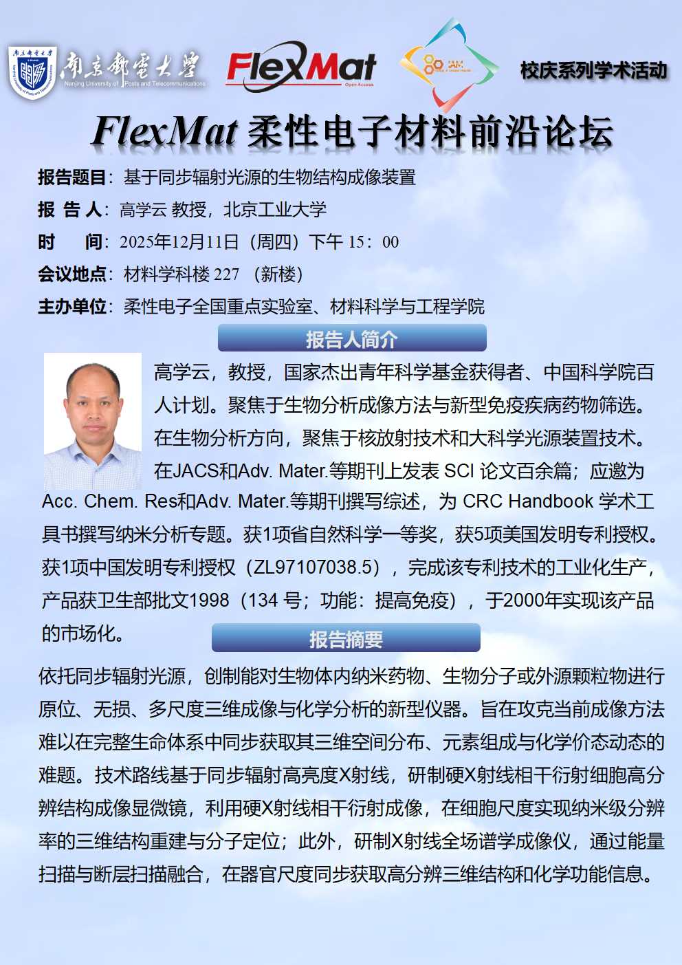 FlexMat柔性电子材料前沿论坛:北京工业大学 高学云教授